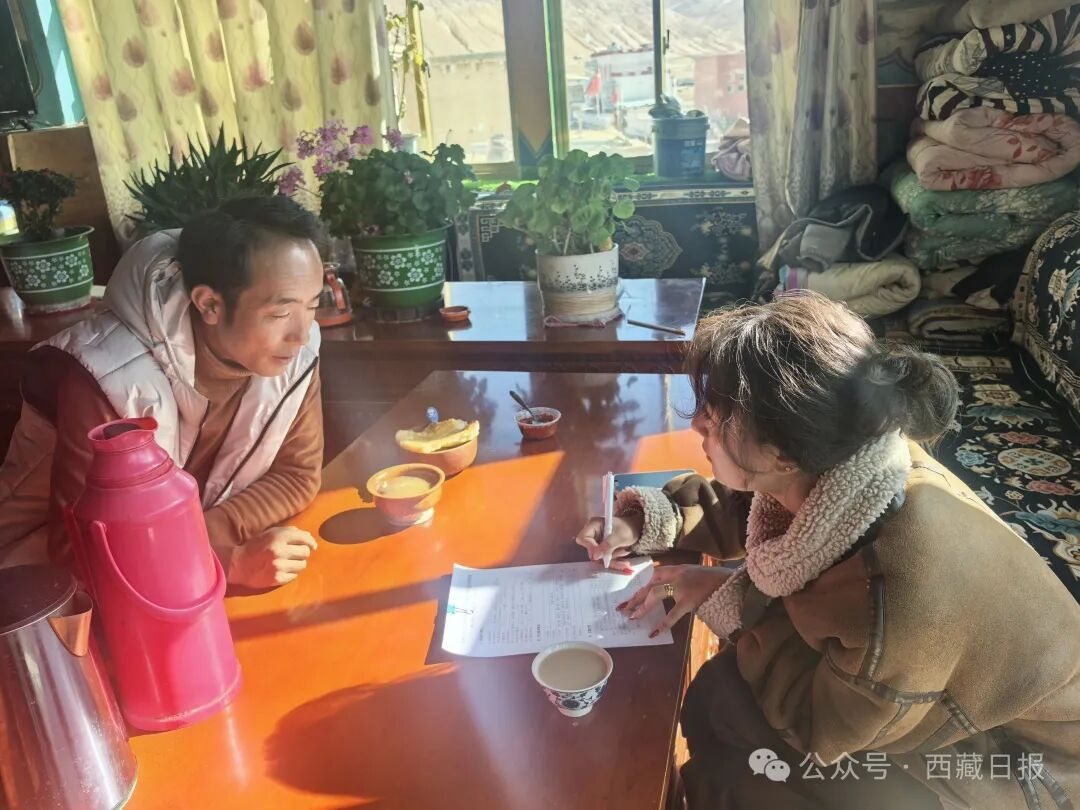 图为昌都市八宿县邦达镇邦达村驻村工作队队员入户了解情况。记者 周婷婷 摄